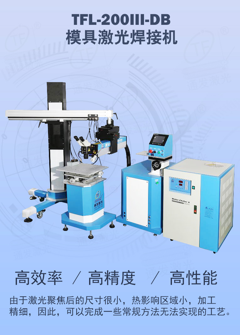 TFL-200Ⅲ-DB型模具激光焊機(jī)是通發(fā)激光公司在TFL-180Ⅲ的基礎(chǔ)進(jìn)行了改良,采用通發(fā)自主研發(fā)的二代精密單燈電源為燈泵浦驅(qū)動電源,操作更方便。主機(jī)具備激光頭手搖升降與工作臺按鈕電動升降實(shí)現(xiàn)焊接不同厚度模具的激光焊加工。本款機(jī)型更適用于各類高精密注塑模具激光補(bǔ)焊,精密塑膠模具零件激光修補(bǔ),塑膠模具鈹銅零件激光燒焊;可對模具使用過程中出現(xiàn)的磨損進(jìn)行激光修復(fù);對機(jī)械加工失誤、電火花加工失誤,模具減膠設(shè)計(jì)變更等需要對模具修改,起到關(guān)鍵的作用,可彌補(bǔ)應(yīng)加工失誤造成的巨大損失。